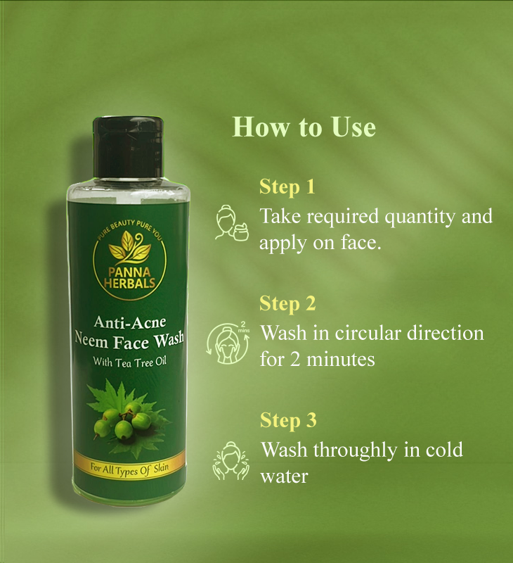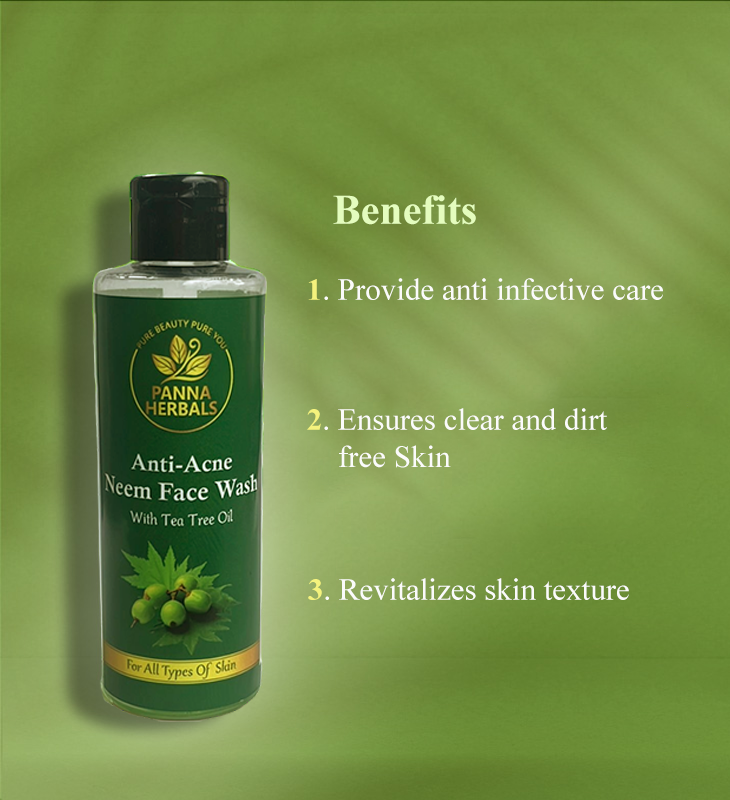 Ingredients: Neem extract, Moringa extract, Tulsi extract, Aloe Vera extract, Witch Hazel extract, Tea tree essential oil, DM water, Cocomono, CAPB. Net Weight/Volume: 100 ml How to Use: Take required quantity and apply on face and wash in circular direction for 2 minutes and wash thoroughly in cold water. Best before: 2 years from the date of manufacture Benefits: Provides anti infective care, ensures clear and dirt free skin, revitalizes skin texture.